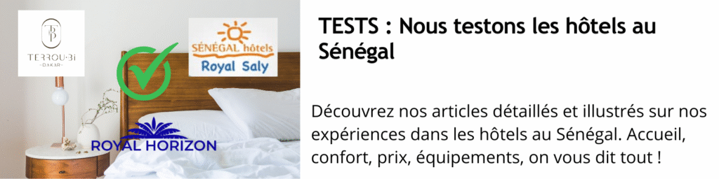Ici, tu pourras préparer ton voyage✈️, connaitre les infos pratiques🔎, découvrir les sites à visiter🏝️, choisir ton hébergement🏨, sélectionner un guide ou une excursion🚕, trouver des activités ou des loisirs🏖️, tout savoir pour s’installer au Sénégal🧳, suivre les dernières actualités touristiques☀️ (bons plans, programme des vols…). I Love Senegal Blog Tourisme-Infos Pratiques- Bons Plans