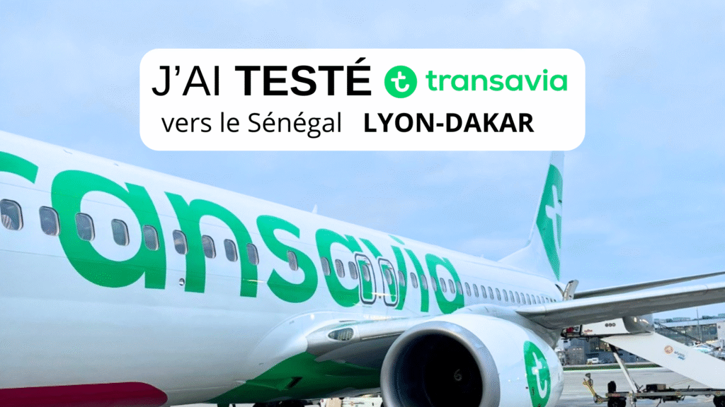 J’ai testé la compagnie Transavia pour Dakar. Toutes mes impressions sur mon expérience de vol Lyon-Dakar avec l’une des compagnies offrant le plus de liaisons vers le Sénégal depuis la France. ▪️ La compagnie en quelques mots▪️ La réservation▪️Le tarif et les bagages▪️Enregistrement et embarquement▪️L’avion et le confort▪️Restauration et service à bord▪️Le vol en bref▪️Mes impressions globales ⭐La compagnie Transavia en quelques mots Transavia est la compagnie Low Cost du groupe Air France, qui dessert le bassin Méditerranéen et depuis quelques années, le Sénégal depuis les villes de province française. Au total, sept aéroports sont reliés à Dakar pour la saison hiver 2025-2026 : Lille, Nantes, Bordeaux, Toulouse, Marseille, Nice et Lyon. Le principe de cette compagnie est simple : le client ne paie, en dehors du vol, que pour les prestations qu’il souhaite avoir. ⭐Le tarif et les bagages En réservant 3 mois à l’avance sur le site de la compagnie, j’ai payé le billet Lyon-Dakar aller-retour 482€.: ✅1 bagage cabine (+ 1 bagage sous le siège)✅ le choix d’un siège standard❌Pas de bagage en soute Je n’avais pas spécialement besoin d’un bagage en soute à ce moment-là, mais avec le recul, le tarif Smart (avec un seul bagage cabine) ne me paraît pas très avantageux. Pour 74 € supplémentaire, le tarif Plus inclut un bagage en soute de 20 kg, ce qui représente finalement une différence de prix assez limitée. À noter également que Transavia propose un service de restauration payant à bord : toutes les consommations sont facturées en supplément (je détaille ce point dans la partie « restauration »). ⭐Enregistrement et embarquement Le départ du vol est prévu à 10h00 depuis l’aéroport de Lyon Saint-Exupéry. Arrivé à 7h30, j’ai choisis de déposer ma voiture au P4, parking extérieur sous abri. Il se situe à 10 min à pied du terminal 1, point de départ du vol. Le parking P5 est un peu moins onéreux, surtout pour les longs séjours, mais il est nécessaire de prendre une navette pour se rendre aux terminaux (gratuite, toutes les 5 à 10min, avec environ 20 minutes de trajet). L’enregistrement ouvre environ deux heures avant le vol. Il est nécessaire de présenter les bagages cabine pour que l’agent appose une étiquette et vérifie leurs dimensions. Des bacs sont à disposition pour s’assurer que vos bagages respectent les standards de la compagnie. Attention donc de respecter les dimensions, sous peine de payer un supplément salé pour embarquer ! Le temps de prendre un café, je passe les contrôles de sûreté, qui sont plutôt bien organisés. Bien sûr, ce moment reste stressant, et le personnel de sûreté peut se montrer direct dans ses interventions. Pensez à bien préparer votre passage, en regroupant vos appareils électroniques dans un même endroit. Vous aurez ainsi plus de facilité à les sortir pour le contrôle. L’embarquement se déroule de manière plutôt fluide et rapide. Les passagers sont regroupés dans une salle dédiée et, après dix minutes et la vérification des cartes d’embarquement des bagages cabine, nous sommes invités à monter à bord par catégorie. La compagnie propose également un service d’embarquement prioritaire dans les tarifs SMART et MAX. Il n’y a pas de passerelle pour l’embarquement de ce vol : il faut donc rejoindre l’appareil à pied et embarquer par les portes avant et arrière, ce qui permet une fluidité appréciable. J’embarque par la porte arrière, située du côté de ma zone de siège, à savoir le 29A. ⭐L’avion et le confort L’avion est un Boeing 737-800 de 13 ans d’âge, configuré en 187 sièges en 3×3. La compagnie a récemment commandé des Airbus A320 Neo mais sa flotte se compose essentiellement de Boeing. Les sièges sont légèrement inclinables et l’accent est mis sur la simplicité. Le bémol est selon moi la place pour les jambes, assez réduite pour 5h30 de vol. Compagnie Low cost oblige, il n’y a ni écran sur les sièges, ni au plafond. L’embarquement s’est fait rapidement, malgré le fait qu’il a fallu débarquer les bagages d’un passager malade. ⭐Restauration et service à bord Transavia propose un service de restauration à bord entièrement payant. Les passagers peuvent choisir parmi une sélection de snacks, sandwichs, plats chauds, boissons chaudes et froides, disponibles à l’achat pendant le vol. Aucune collation ou boisson n’est incluse dans le billet, quel que soit le tarif choisi. Les commandes se font directement à bord, et le paiement s’effectue par carte bancaire ou en liquide. Etant donné que la plupart des vols vers le Sénégal durent entre 5h et 6h depuis la France, je conseille de prévoir un budget pour les collations, ou éventuellement d’acheter de quoi de restaurer a l’aéroport. Les tarifs dans l’avion ne sont pas plus cher qu’en zone d’embarquement. Voici quelques exemples de prix : 🥪8€ pour un sandwich, pain bagnat ou croque-monsieur🥮de 3,5€ à 5€ pour des snacks sucrés☕3,5€ pour un thé ou café🍷de 6,5€ à 7,5€ pour un verre de vin ou une bière🥤3,5€ pour un soda J’ai testé la compagnie Transavia pour Dakar ⭐Le vol en bref Le vol s’est déroulé sans encombre, avec quinze minutes de retard au départ mais cinq minutes d’avance à l’arrivée. Bien que le vol puisse sembler long sans écrans multimédias, cela n’a pas été une contrainte. Prévoyez cependant tablette, musique ou lecture et surtout de quoi occuper les enfants (à noter qu »il est maintenant interdit, sur les compagnies du groupe Air France KLM dont Transavia, d’utiliser des batteries externes durant le vol). Côté service, le personnel de bord a toujours été souriant, à l’écoute des passagers et a su faire preuve de bienveillance quand un passager s’est senti mal. Je salue d’ailleurs au passage les hôtes