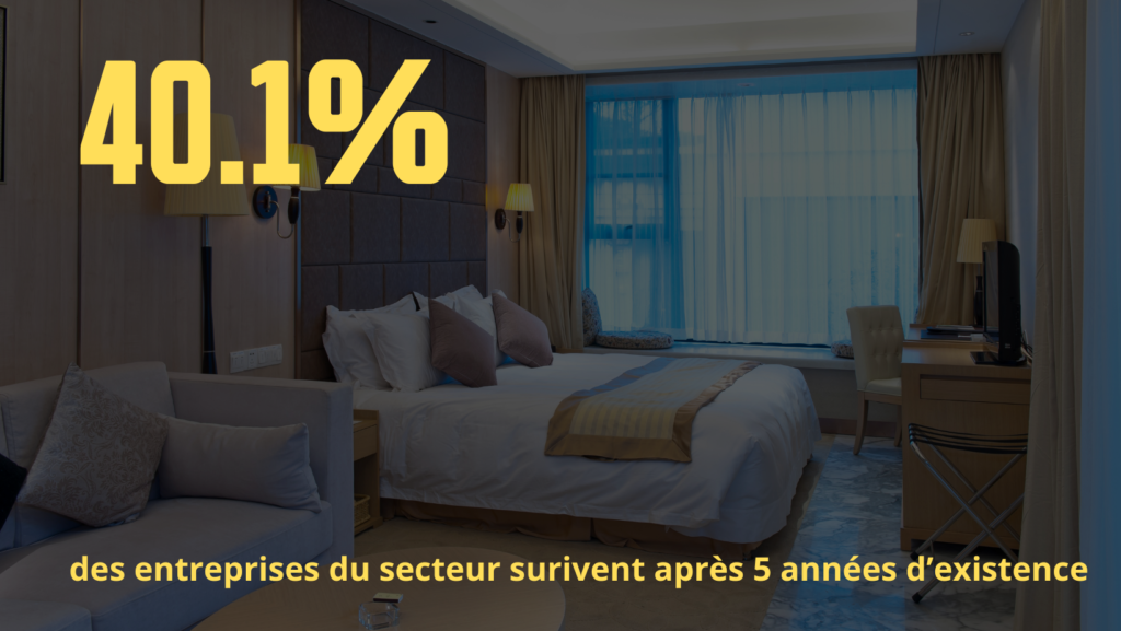 Dans ce secteur, 74,4 % des entreprises survivent à leur première année. Ce chiffre passe à 60,5% la 3e année et à 40,1% après 5 ans d’activité. Le secteur présente une fragilité notable dans les premières années, par rapport à d’autres secteurs d’activités (59.9% dans le commerce) . Autrement dit, près de 6 entreprises sur 10 disparaissent dans les cinq premières années, ce qui illustre les difficultés de gestion, de financement et de concurrence dans ce secteur.