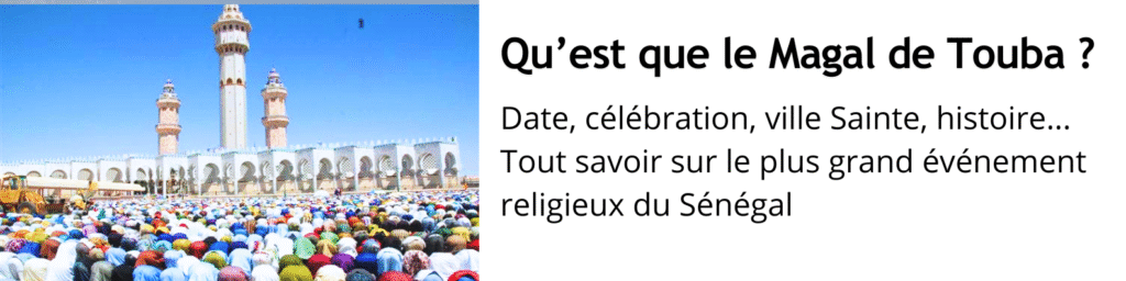 Mon avis : L’architecture de la mosquée, une des plus majestueuses d’Afrique de l’ouest vaut la peine de visiter Touba. Evitez l’effervescence du Magal (voir mon article sur les fêtes religieuses au Sénégal) si vous souhaitez juste visiter la ville. Attention, alcool et cigarette interdits à Touba (soyez prévoyants) et tenue couverte exigée (couvrir bras et jambes). Je vous conseille vivement un guide