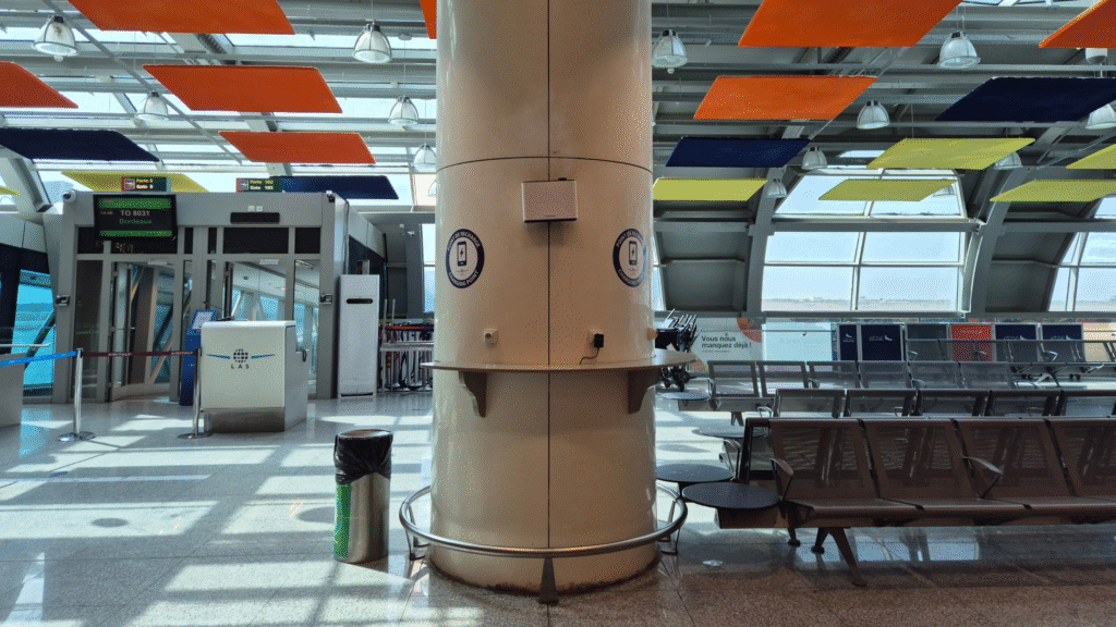 Profiter d’un espace gratuit pour charger votre téléphone portable au centre de la salle d’embarquement.