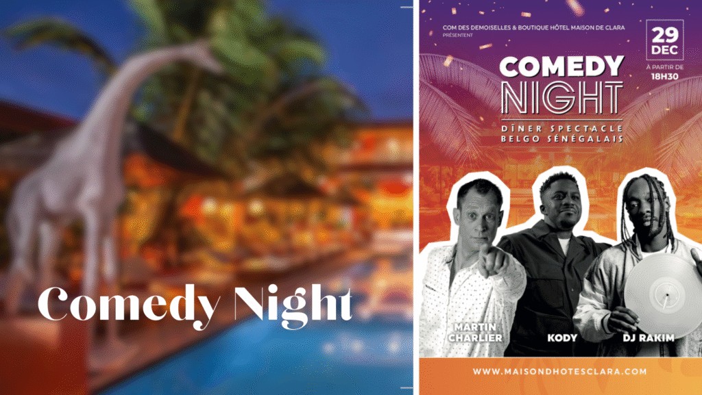 La Boutique Hôtel Maison de Clara et Com’des Demoiselles vous invitent à une soirée exceptionnelle : un Dîner-spectacle belgo-sénégalais ✨