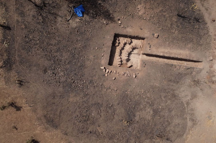 Vue par cerf-volant du site de réduction du fer de Didé West 1 après l’opération de fouilles de 2018. Crédit photo Camille Ollier