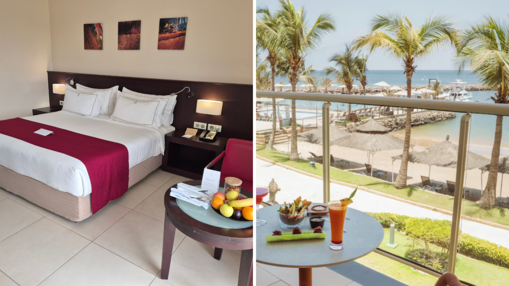 158 chambres et 9 suites, une piscine chauffée de 34 mètres de long, une plage privée avec vue sur l’Atlantique, un casino avec 140 machines à sous, le restaurant emblématique La Terrasse, son nouveau Bar design Le Diamono, un service de conciergerie, des salles de conférences et de séminaires, et de nombreuses prestations haut de gamme